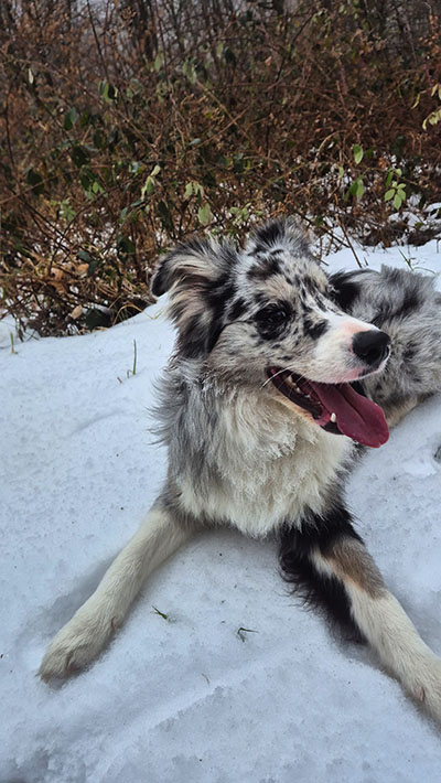 Lea kann sehr gut zur Ruhe kommen und schafft es, innerhalb weniger Sekunden von einem energiegeladenen Zustand in Entspannung zu wechseln. Sie schläft viel und entscheidet sich bei Langeweile selbstständig für Ruhe. Bellen tut sie nur in sehr aufregenden Situationen, beispielsweise kurz bevor wir mit dem Fahrrad losfahren.